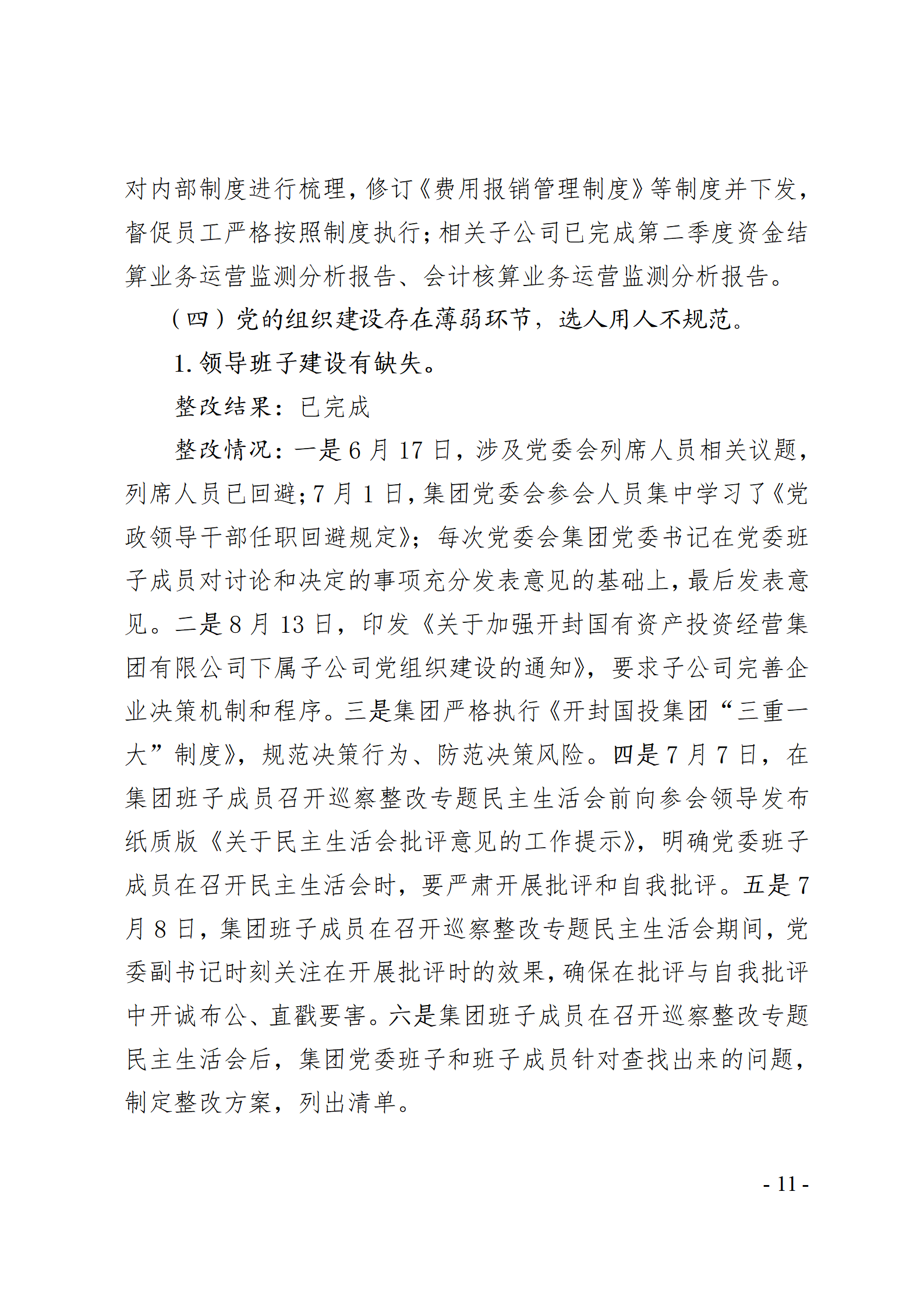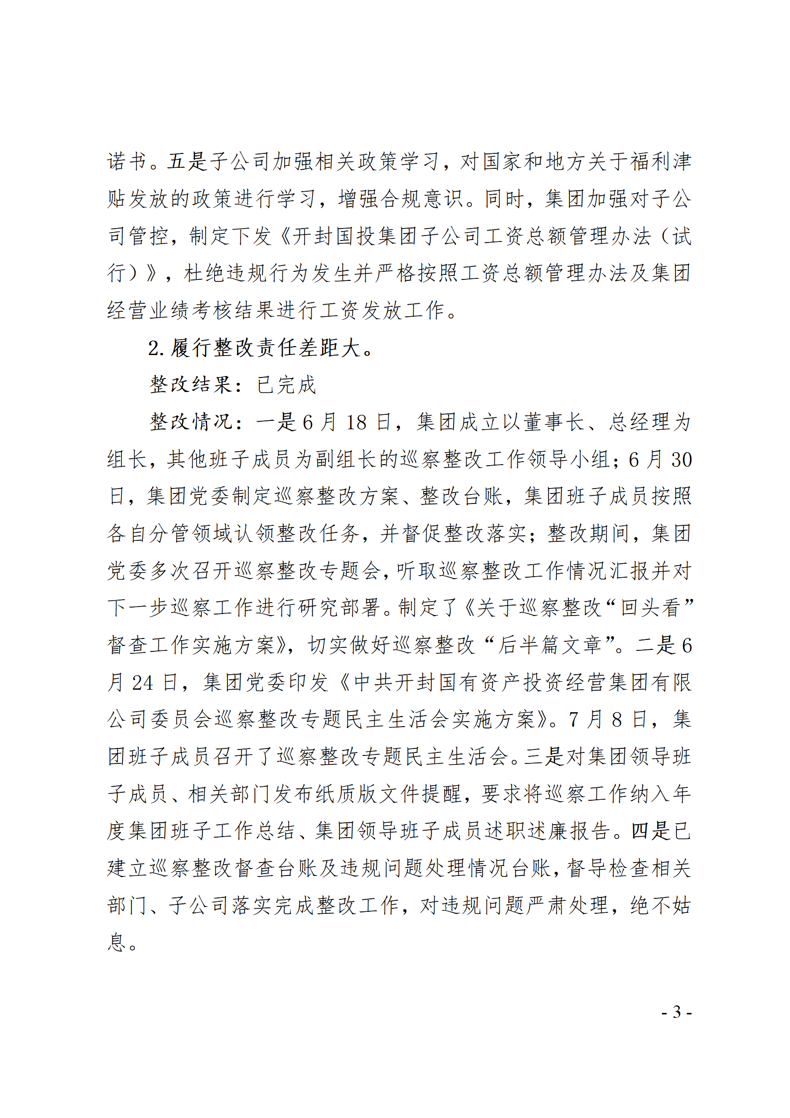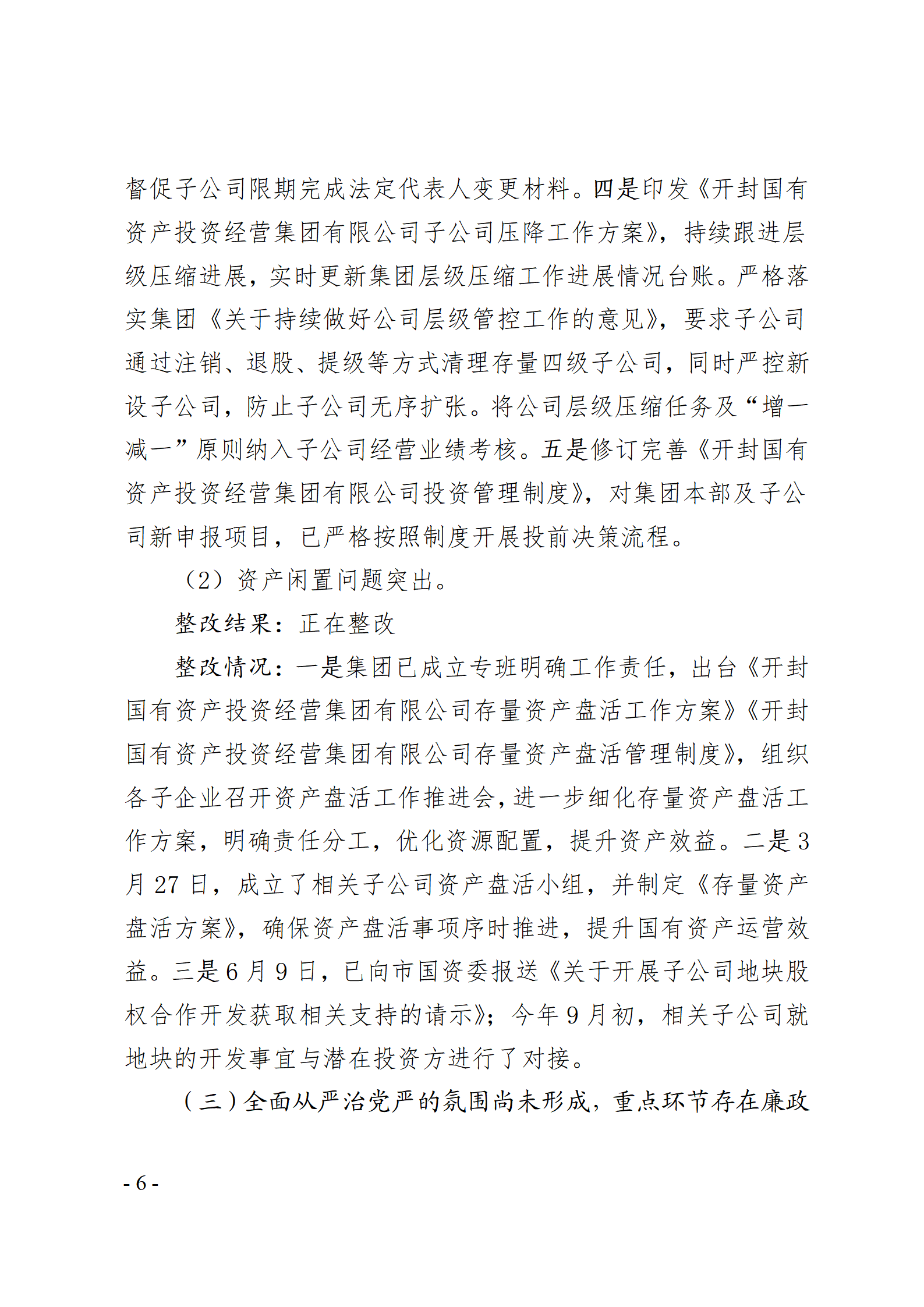 開封國有資產(chǎn)投資經(jīng)營(yíng)集團(tuán)有限公司黨委關(guān)于巡察整改情況的通報(bào)