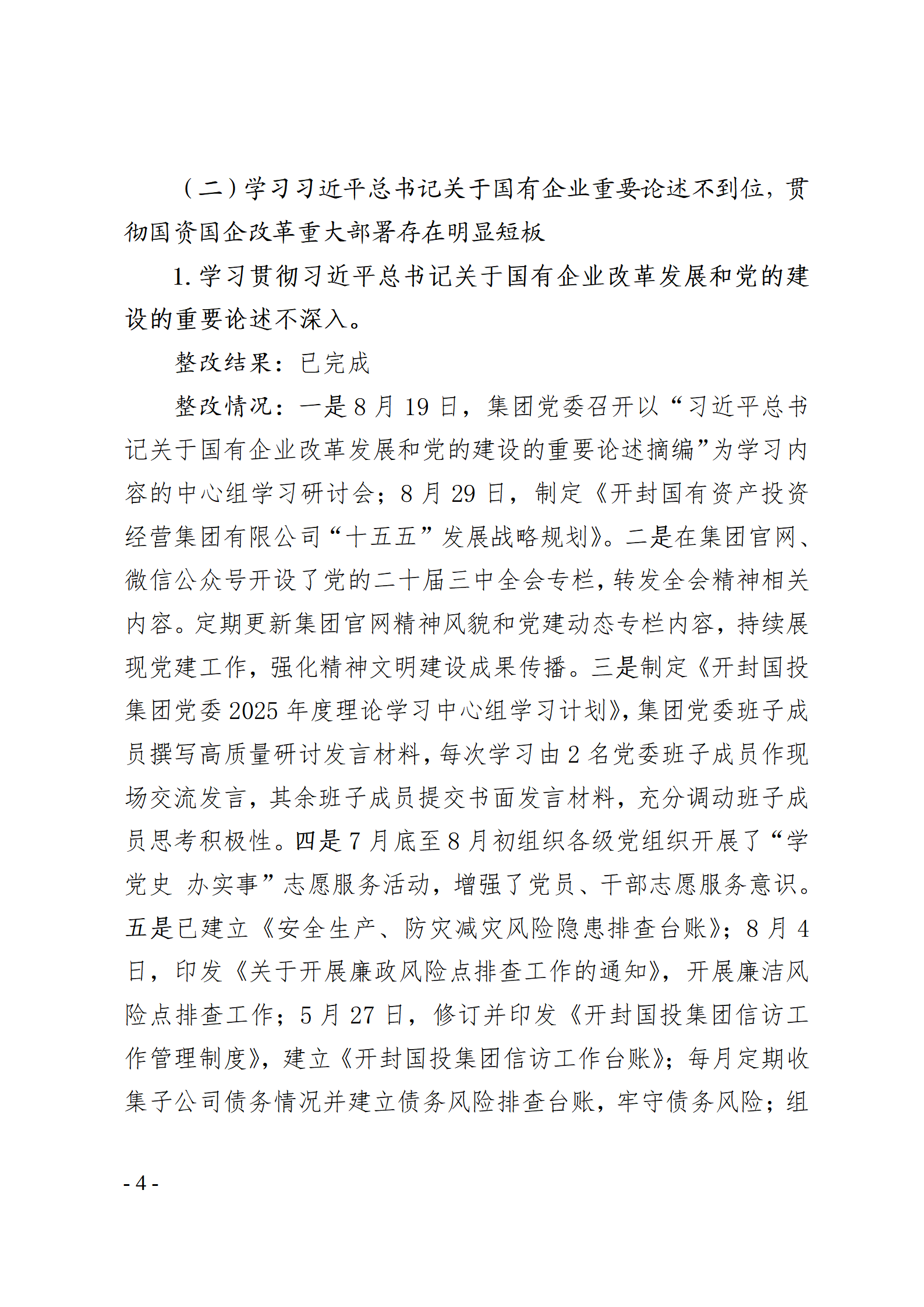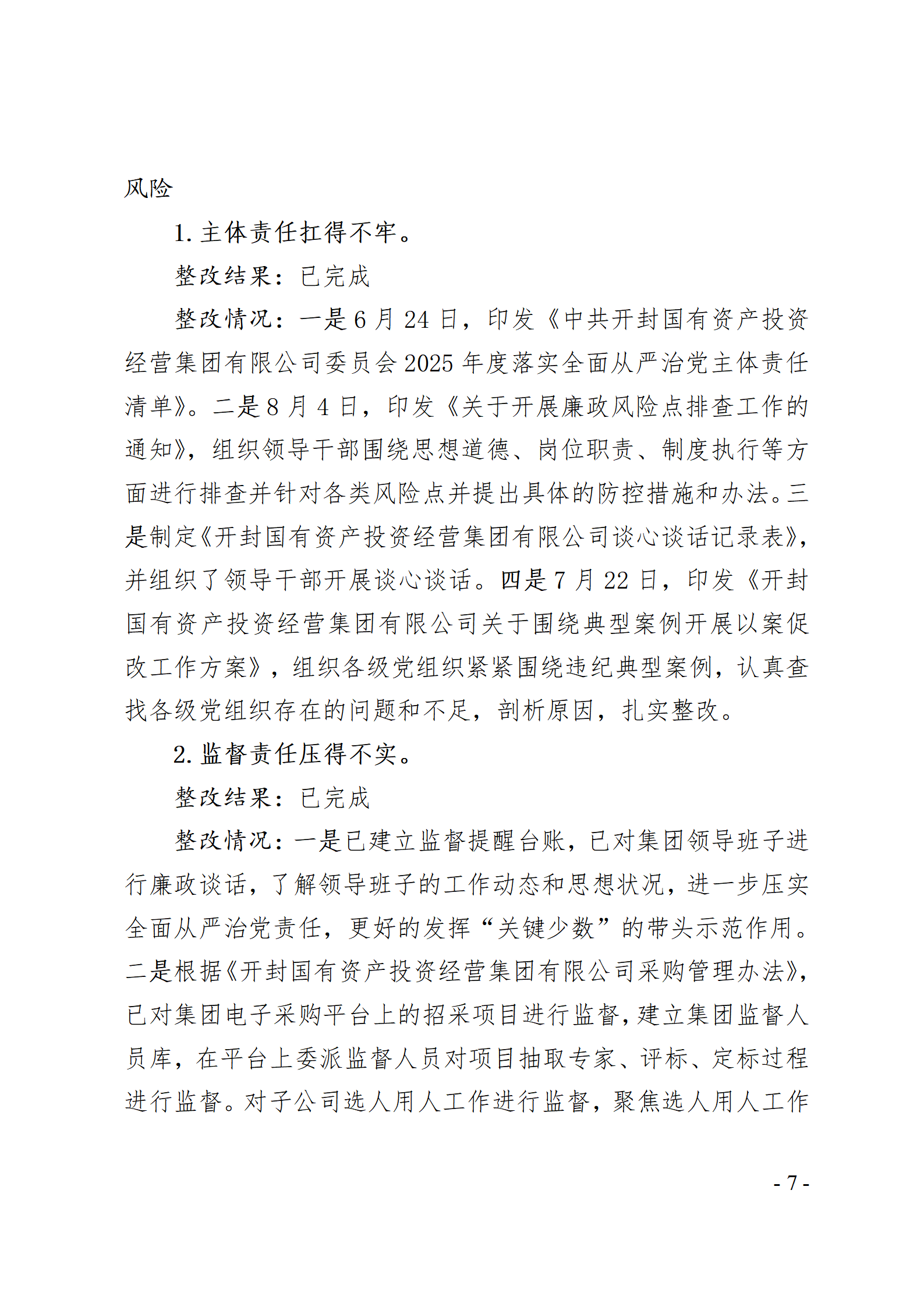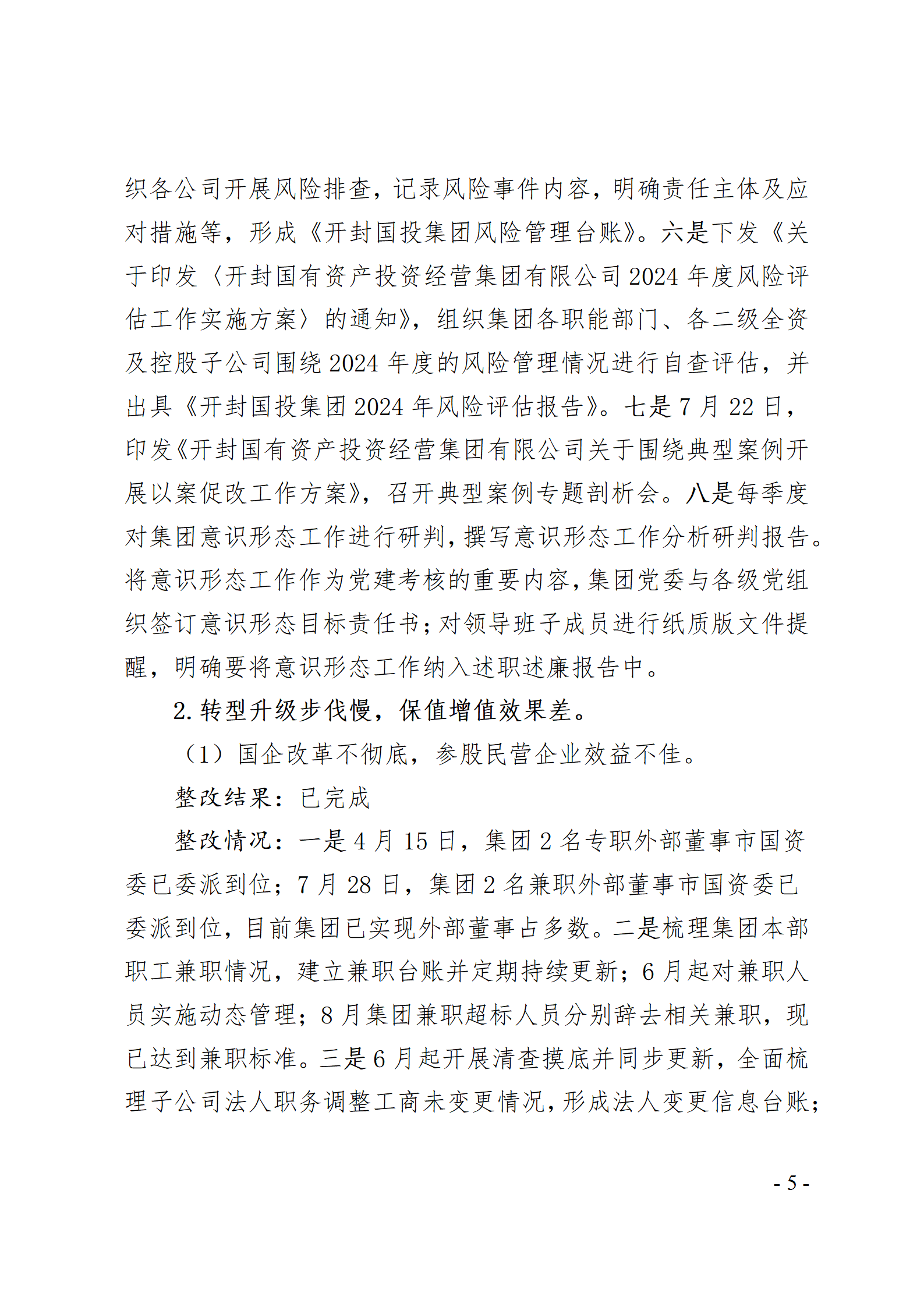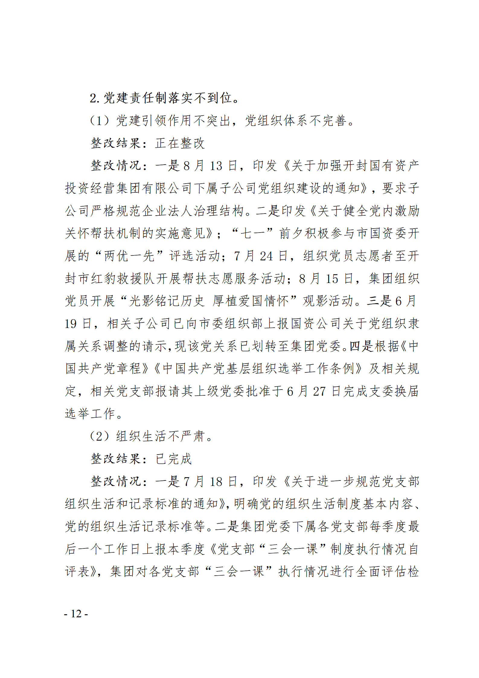 開封國有資產(chǎn)投資經(jīng)營(yíng)集團(tuán)有限公司黨委關(guān)于巡察整改情況的通報(bào)
